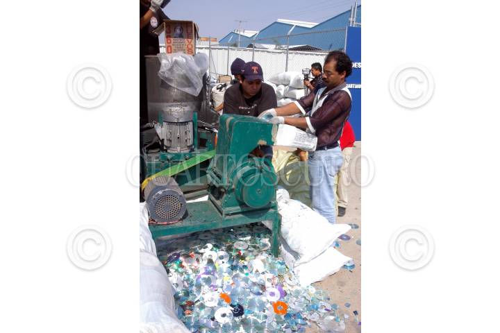 QUERATARO, QUERETARO, 09MAYO2006.- Destrucción de 497,598 discos piratas por parte de la PGR delegación Querétaro, el plástico que se destruye se utiliza como material de reciclaje. FOTO: Demian Chávez/CUARTOSCURO.COM