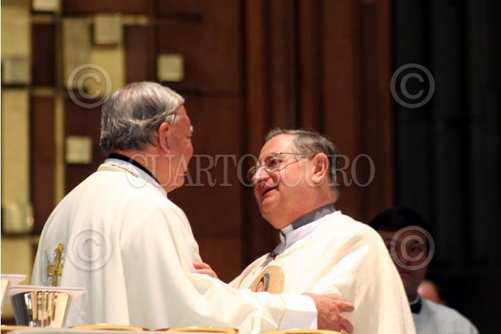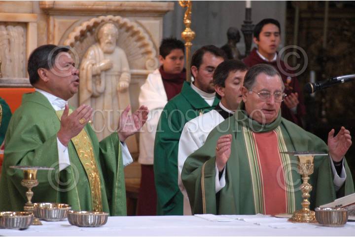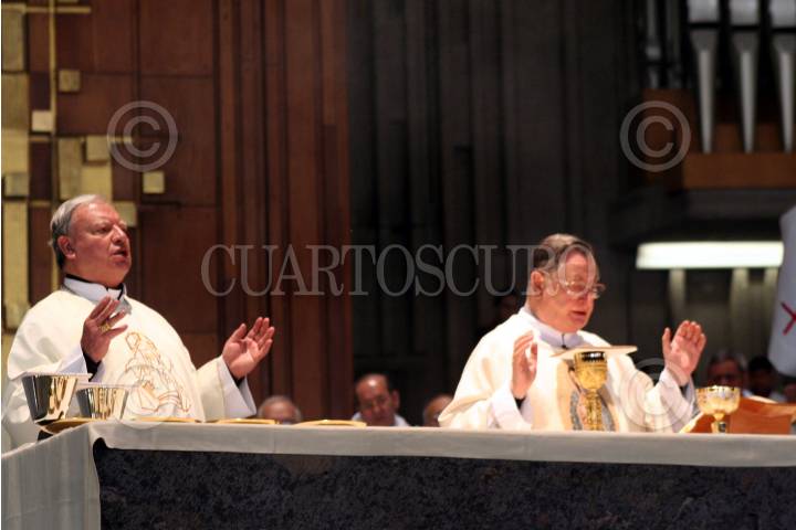 MÉXICO, D.F., 10MAYO2009.- Diego Monroy, rector de la Basílica de Guadalupe y Monseñor Christopher Pierre, nuncio apostólico en México durante una misa solemne por motivo de los 300 años de la apertura del Templo Expiatorio a Cristo Rey, Antigua Basílica de Guadalupe. FOTO: RODOLFO ANGULO/CUARTOCURO.COM