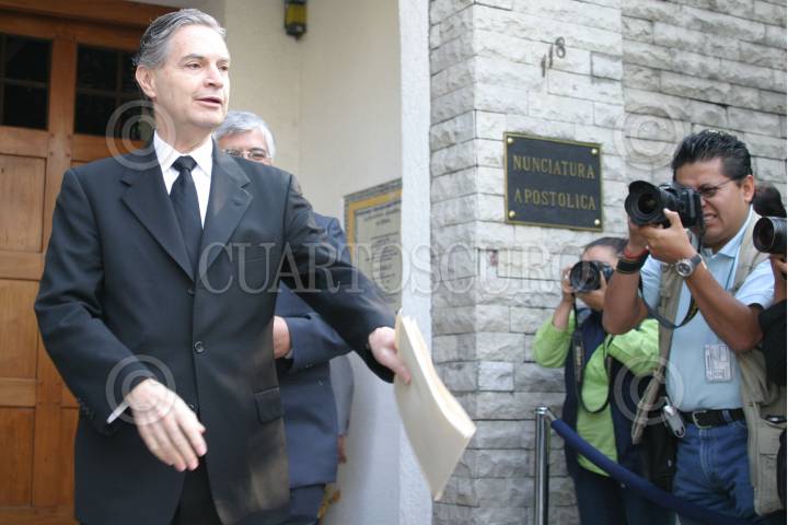 MEXICO, D.F. 04ABRIL2005.- Diego Monrroy, Abad de la Basílica, a su llegada a la Nunciatura Apostólica, donde firmó el libro de condolencias por el fallecimiento del Papa Juan Pablo II. FOTO: Sandra Perdomo/CUARTOSCURO.COM