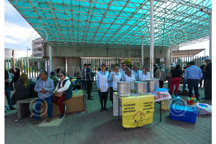 TOLUCA, ESTADO DE MÉXICO, 24DICIEMBRE2024.- Manuel González desde hace más de 8 años junto con 50 mujeres empezaron a compartir alimentos con los familiares de enfermos que se encuentran en la zona de hospitales de Toluca, como el Centro Médico “Lic. Adolfo López Mateos”, Nicolas San Juan, “Padeciendo contigo” vienen de la delegación toluqueña de San Pablo Autopan, iniciaron dando pan y atole y después llevaron almuerzos, que consiste en arroz, frijoles, guisado, tortillas y agua de sabor, dan aproximadamente de 200 a 250 almuerzos en cada visita y para no generar residuos llevan sus platos, vasos y cubiertos de plástico que después de usarlos se los recogen y son lavados y desinfectados para poderlos volver a usar. Desde las 5 de la mañana las mujeres comienzan a guisar para que todos los alimentos que se comparten lleguen recién hechos. Ellos tratan de ponerse en los zapatos de cada una de las personas y todo esto surge al ver la necesidad de los familiares a las afueras de los hospitales, el apoyo que dan es con recursos propios, han recibido donativos durante estos años pero han sido muy pocos. Invitan a la gente a apoyarlos a través de sus redes sociales, atienden también a adultos mayores y enfermos y ya que siempre hace falta ayuda. FOTO: CRISANTA ESPINOSA AGUILAR / CUARTOSCURO.COM