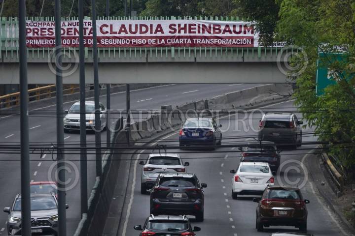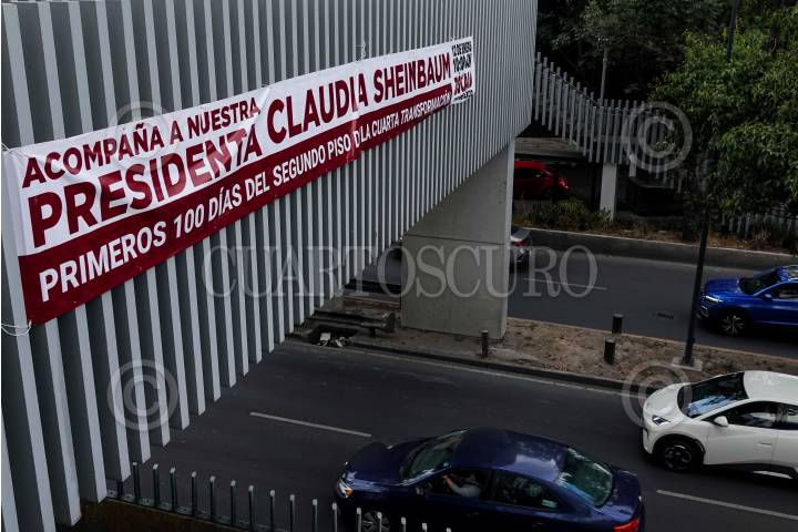 CIUDAD DE MÉXICO, 07ENERO2024.- Lonas en apoyo a la presidenta Claudia Sheinbaum y que invitan al informe de los primeros 100 días de su mandato, el próximo 12 de enero de 2025 fueron colocadas sobre avenida Río San Joaquín en la alcaldía Miguel Hidalgo. FOTO: GALO CAÑAS/CUARTOSCURO.COM