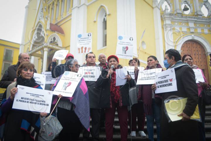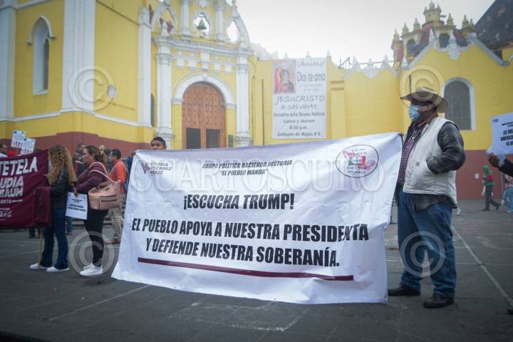 XALAPA, VERACRUZ, 20ENERO2025.- La diputada local de Morena, Victoria Gutiérrez, se manifestó con un grupo de ciudadanos para exigir respeto a México y respaldar a la presidenta Claudia Sheinbaum ante la llegada de Donald Trump a la presidencia de Estados Unidos. FOTO: YERANIA ROLÓN/CUARTOSCURO.COM