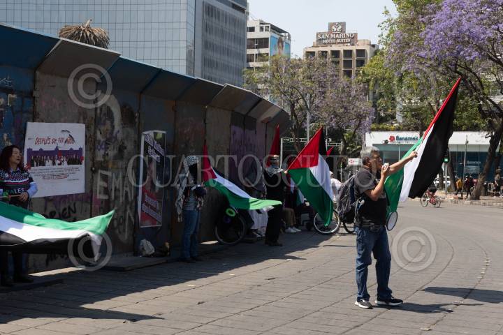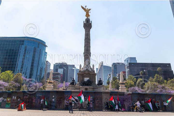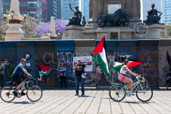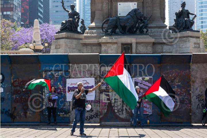CIUDAD DE MÉXICO, 16MARZO2025.- Ciudadanos se manifestaron a favor del pueblo palestino y repudiaron lo que ellos llamaron "genocidio" por parte de Israel, durante un conflicto que ha durado más de un año. Cada domingo personas se reúnen en las inmediaciones del Ángel de la Independencia para lanzar consignas. FOTO: MOISÉS PABLO/CUARTOSCURO.COM