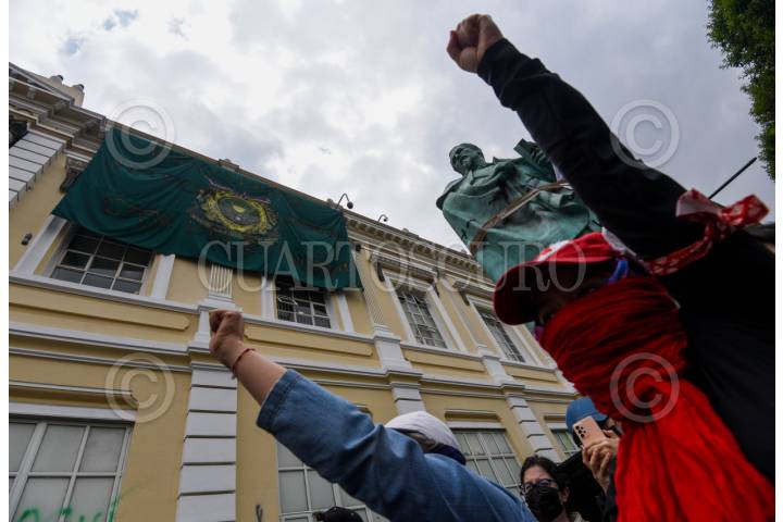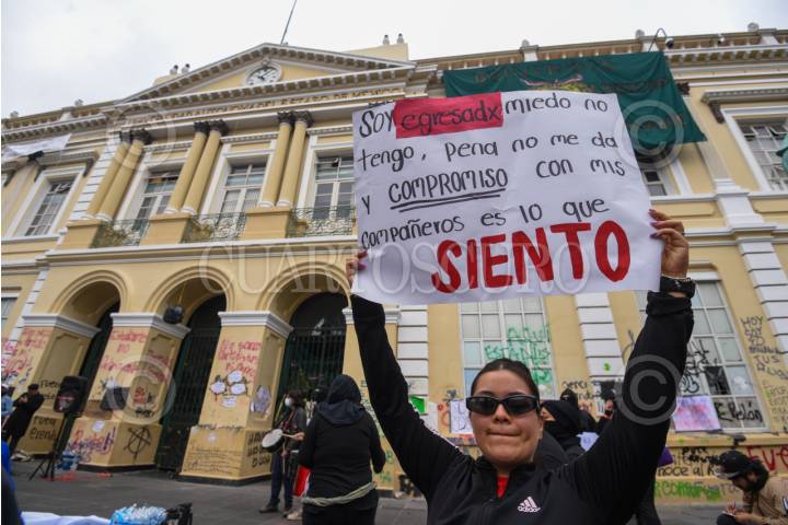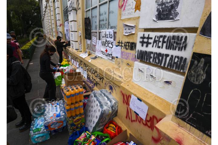 TOLUCA, ESTADO DE MÉXICO, 11 MAYO 2025.- Egresados de diferentes generaciones de la UAEM se reunieron en la “Casa del Estudiante”, antes edificio de Rectoría, para mostrar su solidaridad al movimiento estudiantil. En micrófono abierto expresaron su apoyo, así como la entrega de víveres para los estudiantes en paro. FOTO: CRISANTA ESPINOSA AGUILAR /CUARTOSCURO.COM