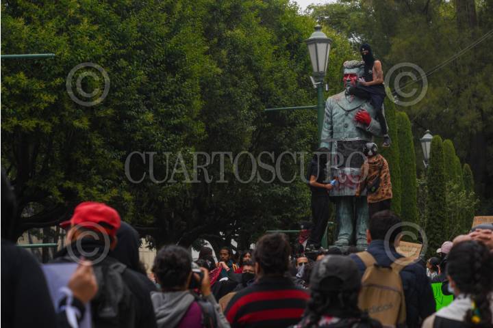 QUERÉTARO, QUERÉTARO, 15JUNIO2025.- Activistas del colectivo Querétaro con Palestina realizaron una marcha pacífica desde plaza de armas hasta las oficinas de la Secretaría de Relaciones Exteriores. Los manifestantes exigieron el rompimiento de relaciones del estado mexicano con el estado israelí. FOTO: CÉSAR GÓMEZ/CUARTOSCURO.COM