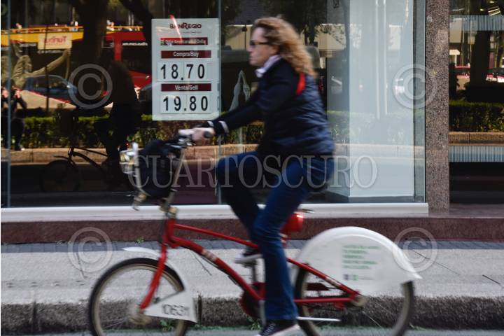 Precio del dólar sobre distintos puntos de Paseo de la Reforma con precios entre los 17.20-17.50 pesos por unidad.