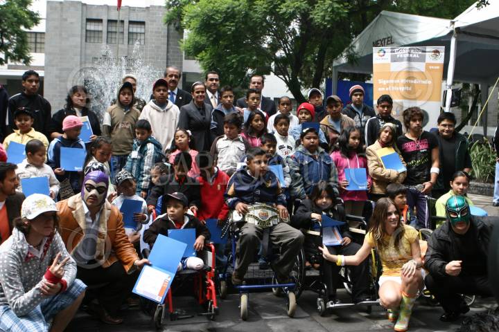 MÉXICO, D.F., 23JULIO2009.- Esta mañana Jóse Ángel Córdova Villalobos, secretario de Salud, en compañía de Gabriela Gallardo, presidenta del Voluntariado de la SSA Y Gabriela Goldsmith, actriz, hizo entrega de reconocimientos a los niños que son parte del programa, "Sigamos aprendiendo en el hospital". FOTO: EDUARDO MORALES/ CUARTOSCURO.COM