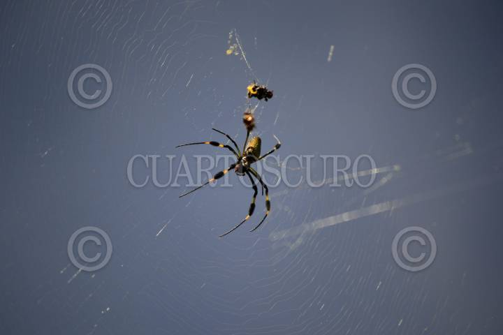 TIXTLA, GUERERO, 03NOVIEMBRE2017.-Abundantes arañas (Nephila clavipes) se localizan en los árboles y arbustos ubicados en la zona boscosa. FOTO: JOSÉ I. HERNÁNDEZ / CUARTOSCURO.COM