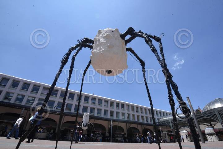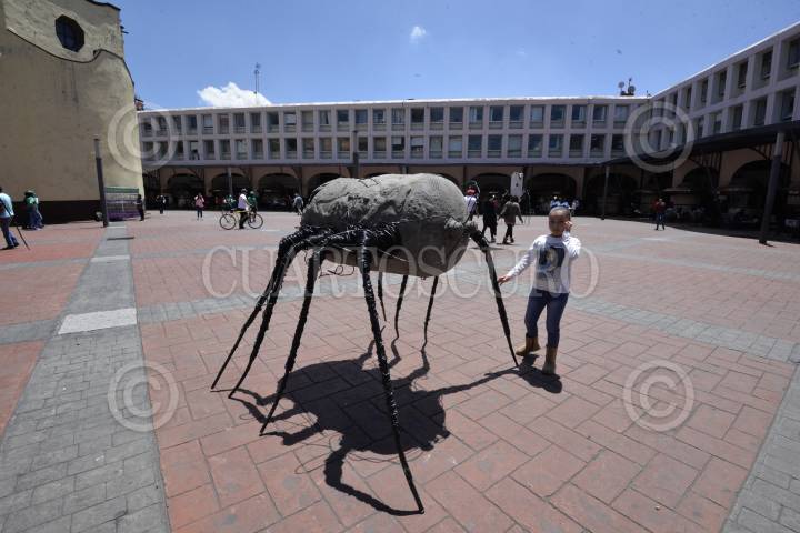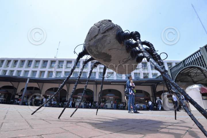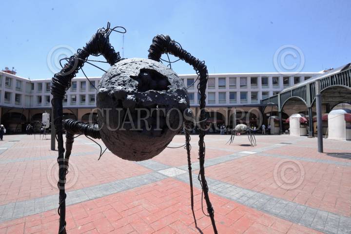TOLUCA, ESTADO DE MÉXICO, 29AGOSTO2018.- La Plaza Fray Andrés de Castro es el escenario de la exposición “Irrupción” del escultor mexiquense Jesús Nonato Barón, integrada por cuatro esculturas de gran formato basadas en insectos, arañas, larvas y gusanos, como una forma de celebrar la grandeza de las pequeñas cosas. FOTO: ARTEMIO GUERRA BAZ /CUARTOSCURO.COM