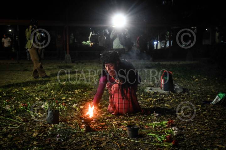 CIUDAD DE MÉXICO, 14MARZO2025.- Araceli Osorio, madre de Lesvy (víctima de feminicidio en 2017) junto a mujeres del colectivo "Las siempre vivas" colocaron una ofrenda en las inmediaciones del parque Nonoalco en homenaje de Gilda Guadalupe Pérez Rivera, localizada sin vida el pasado 8 de marzo de 2025 en Tlatelolco. Las mujeres del colectivo exigieron justicia y esclarecimiento del feminicidio. FOTO: MARIO JASSO/CUARTOSCURO.COM