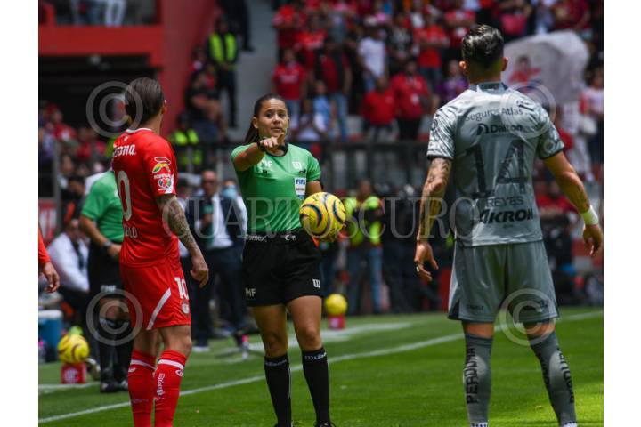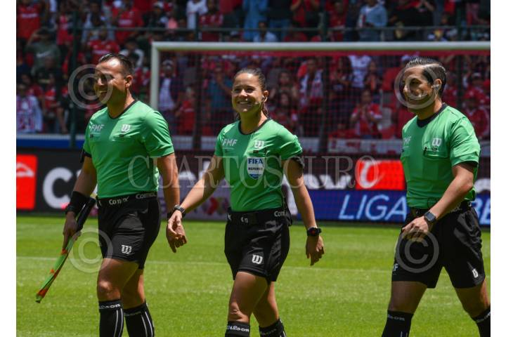 TOLUCA, ESTADO DE MÉXICO, 07ABRIL2024.- La silbante Karen Hernández fungió como árbitro central en el encuentro entre Diablos de Toluca y Atlas, en la jornada 14 del Torneo Clausura 2024 en el estadio Nemesio Diez. FOTO: CRISANTA ESPINOSA AGUILAR /CUARTOSCURO.COM