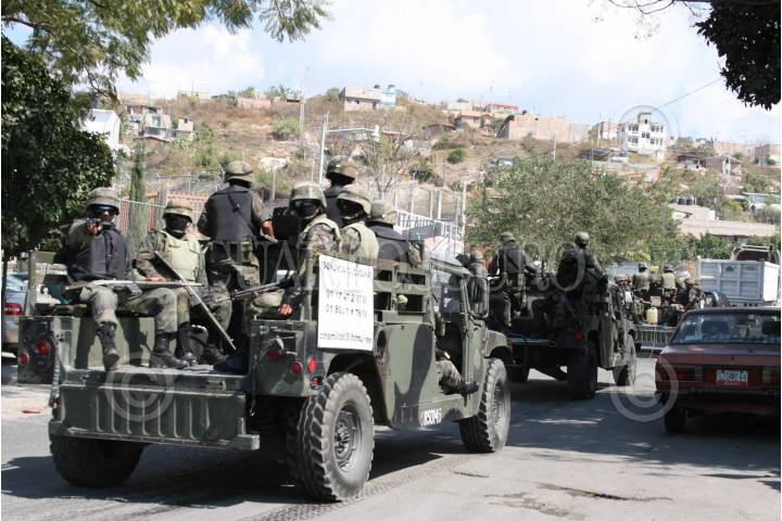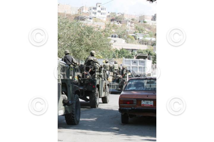 CHILPANCINGO, GUERRERO 25ENERO2009.- Efectivos del ejercito mexicano durante los constantes recorridos que realizan por diversos puntos de la capital del estado como parte de los operativos que llevan a cabo diariamente para combatir a la delincuencia organizada , esto a pesar de las denuncias que existen en su contra en la comision estatal y nacional de los derechos humanos, por la violacion a los derechos humanos que han hecho en contra de varios ciudadanos, al momento de catear sus viviendas y revisarlos de manera arbitraria. FOTO: OSCAR ALVARADO/CUARTOSCURO.COM
