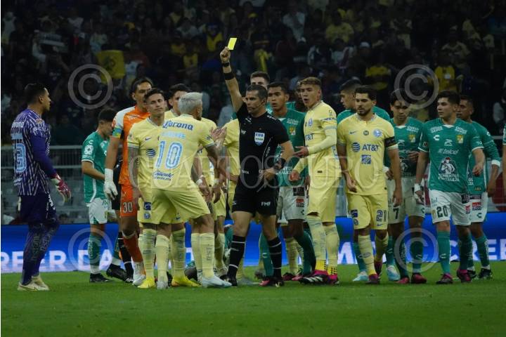 El árbitro Fernando Hernández amonestó con tarjeta amarilla al jugador Diego Valdés, centrocampista del equipo del América, durante el partido contra el León