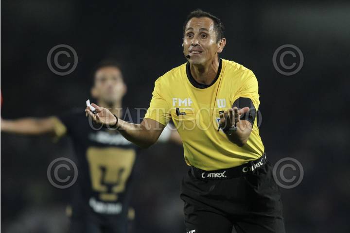 El Árbitro Central César Arturo Palazuelos durante el partido de fútbol Pumas vs Querétaro correspondiente a la jornada 13 del Torneo Apertura 2022 de Liga BBVA MX, en el estadio Olímpico Universitario.