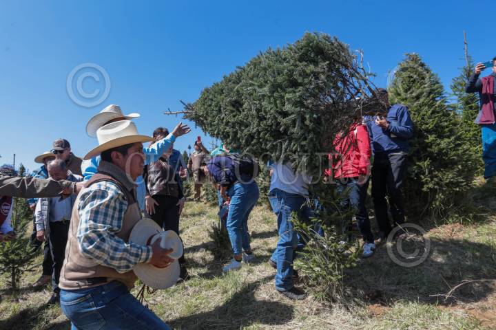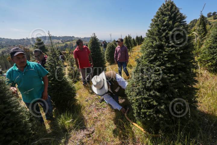 XONACATLAN, ESTADO DE MÉXICO, 14NOVIEMBRE2024.- Productores de árboles de Navidad en San Miguel Mimiapan y Santiago Tecojotillos en Xonacatlán realizaron el primer corte de Árboles de Navidad, especies como Oyamel, Ayacahuite, Pino Ocote y Pseudotsuga adornaran los hogares mexiquenses durante los festejos decembrinos, esta actividad ayuda en el combate a la tala clandestina que es un grave problema en esta zona así como ayuda a fomentar el ecoturismo y el cuidado al medio ambiente. FOTO: CRISANTA ESPINOSA AGUILAR /CUARTOSCURO.COM