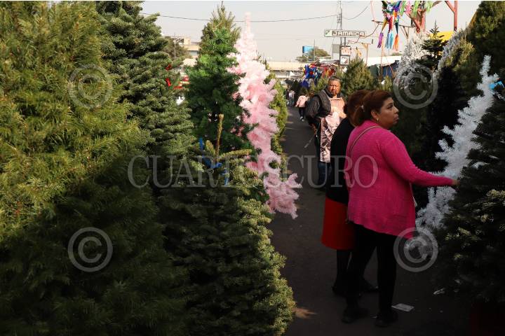 CIUDAD DE MÉXICO, 17DICIEMBRE2024.- Árboles de navidad, tanto naturales como artificiales, son vendidos al exterior del Mercado Jamaica. FOTO: DANIEL AUGUSTO/ CUARTOSCURO.COM