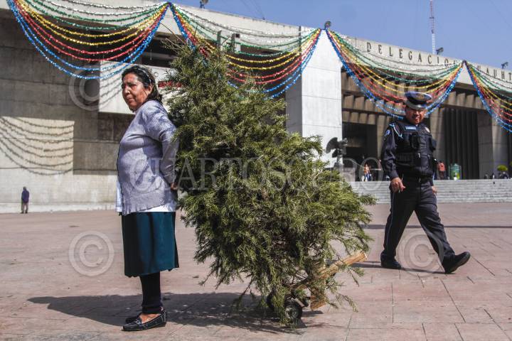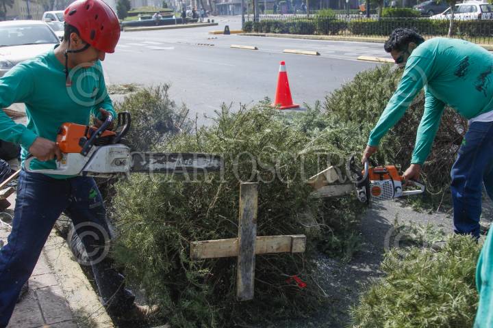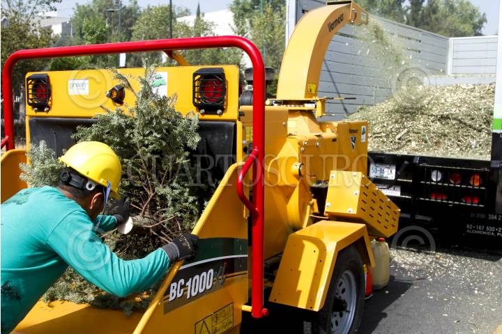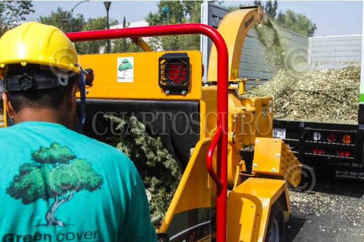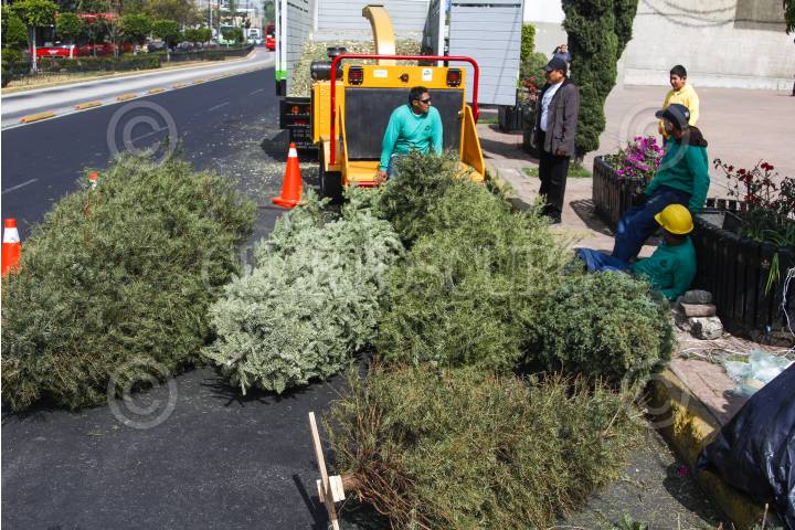 MÉXICO, D.F., 07ENERO2012.- Decenas de capitalinos acudieron a la delegación Cuauhtemoc para dejar sus árboles naturales de navidad, los cuales fueron triturados y a cambio les fueron entregadas plantas. La colecta seguirá en todas las delegaciones. FOTO: ENRIQUE ORDÓÑEZ /CUARTOSCURO.COM