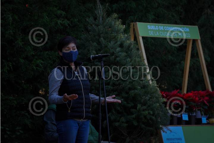 Marina Robles García, titular de la Secretaría del Medio Ambiente (Sedema) capitalina, durante la "Apertura de la temporada de árboles de Navidad en la Ciudad de México".