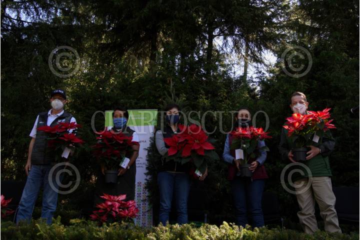 Marina Robles García, titular de la Secretaría del Medio Ambiente (Sedema) capitalina, durante la "Apertura de la temporada de árboles de Navidad en la Ciudad de México", en compañía de Fadlala Akabani, titular de la Secretaría de Desarrollo Económico de la capital; Carlos Mackinlay Grohmann, secretario de Turismo capitalino, y Columba López Gutiérrez, directora General de la Comisión de Recursos Naturales y Desarrollo Rural de Sedema.