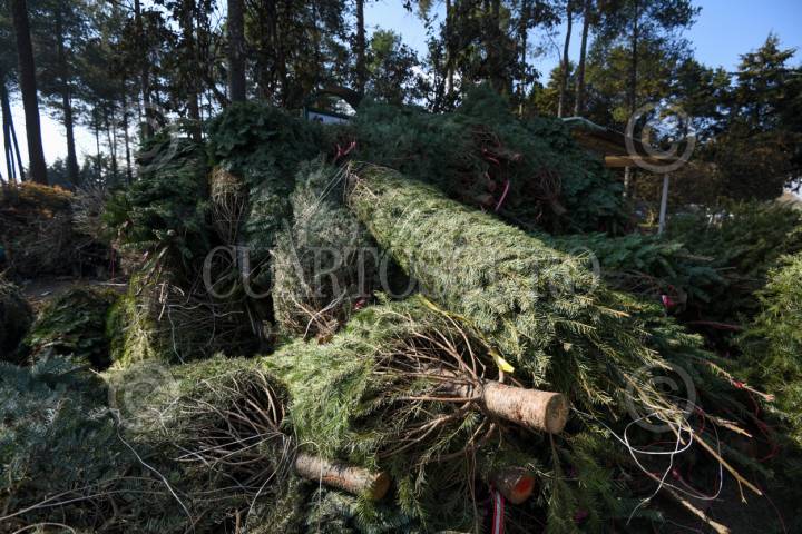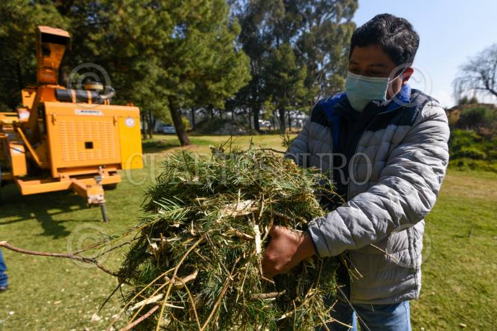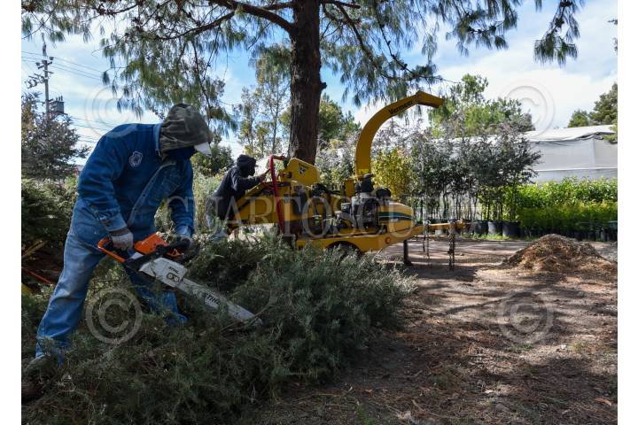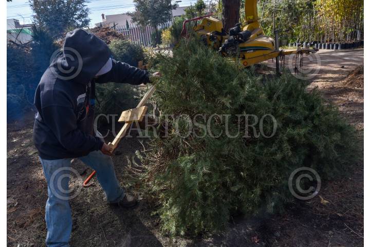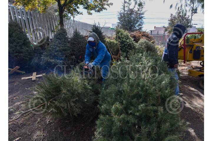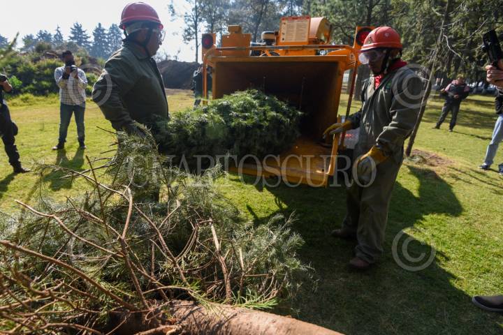 Reciclaje de árboles navideños en el vivero municipal de Metepec, fueron abiertos 8 centros de acopio en el municipio, para ser convertidos en composta.