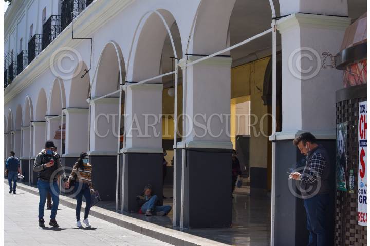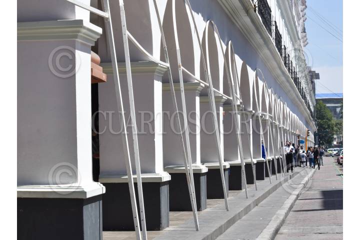 Inician la colocación de arcos metálicos en los Portales de Toluca para la realización de la Feria del Alfeñique.
