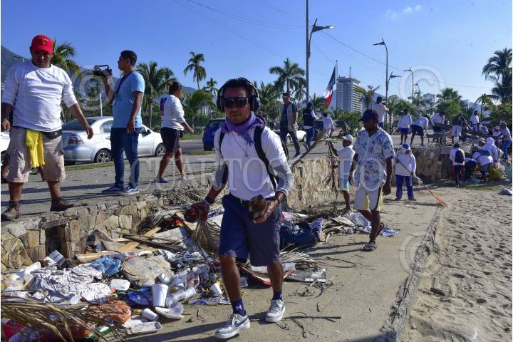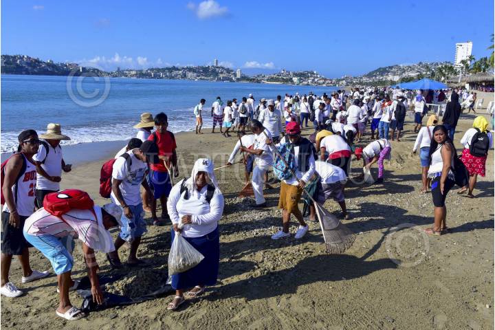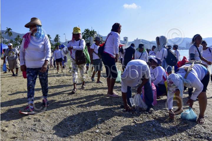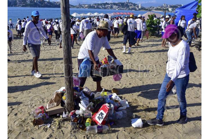 ACAPULCO, GUERRERO, 04FEBRERO2025.- Decenas de prestadores de servicios turísticos de las playas de Acapulco se organizaron para realizar una jornada de limpieza en las playas del puerto en la que lograron retirar vidrios, colillas de cigarro, piedras y escombros de la arena. FOTO: CARLOS CARBAJAL/CUARTOSCURO.COM