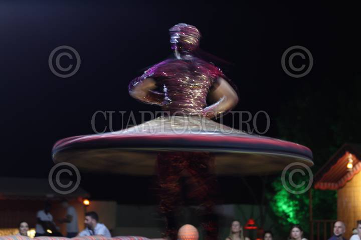 Presentación de bailarín en el campamento para turistas instalado en el desierto Rub-Al-Khali en Abu Dhabi