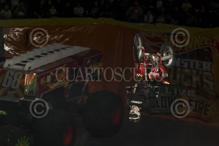 CIUDAD DE MÉXICO. 12JULIO2025.- Freestyle Motocross durante la primera fecha del espectáculo de camiones monstruo "Hot Wheels Monster Trucks, Live-N-Fire", en la Arena Ciudad de México. FOTO: EDGAR NEGRETE LIRA/CUARTOSCURO.COM