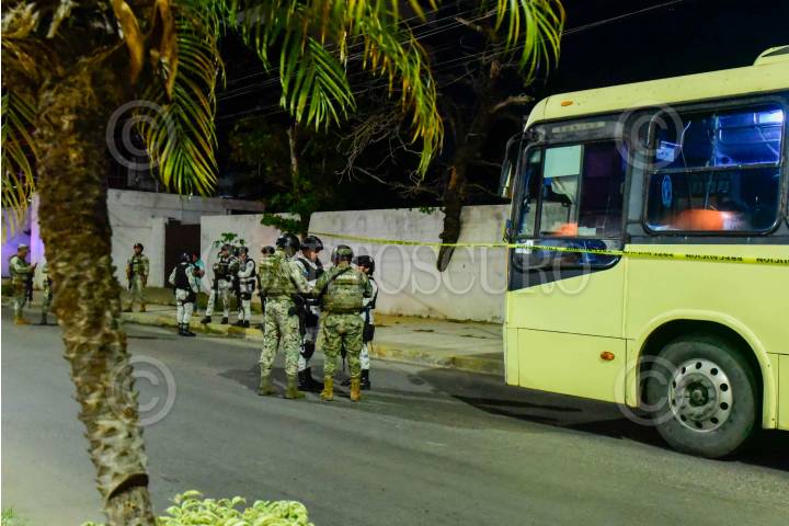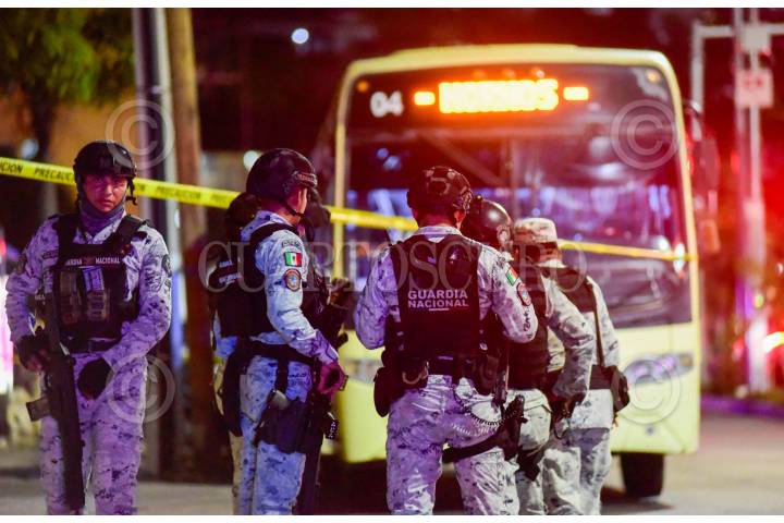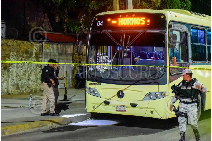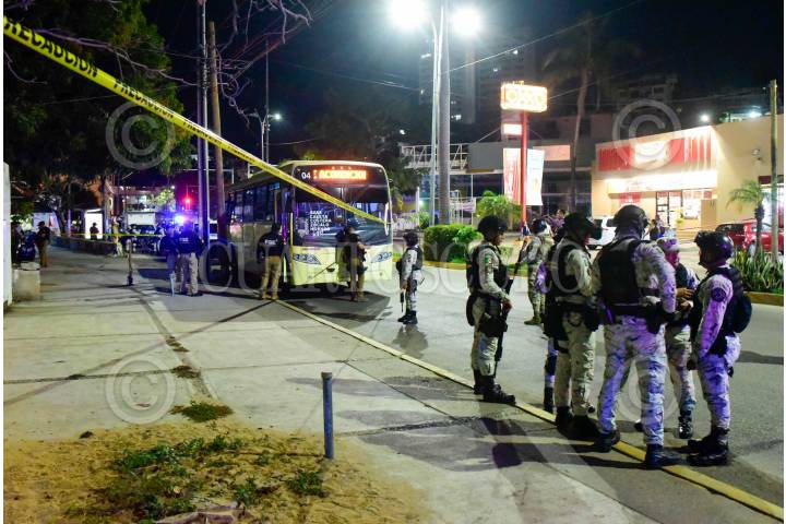 ACAPULCO, GUERRERO, 25ENERO2025.- Una mujer fue herida a balazos cuando viajaba en un camión en la avenida Costera en la zona turística de Caleta. La mujer fue atendida por parámedicos de la Cruz Roja y trasladada a un hospital, mientras el camión quedó resguardado por agentes de la Guardia Nacional y policías, para que se realizarán el peritaje de ley. FOTO: CARLOS CARBAJAL/CUARTOSCURO.COM