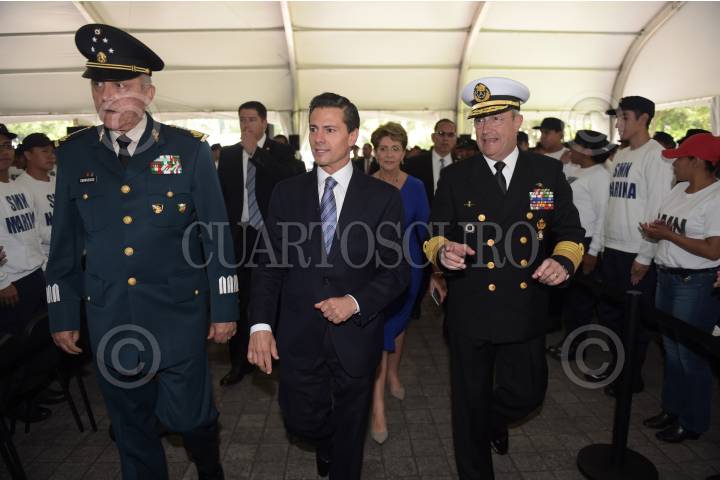MÉXICO, D.F., 21JULIO2015.- El Presidente de la República, Enrique Peña Nieto, encabezó hoy la firma de las bases de colaboración entre las Secretarías de la Defensa Nacional, de Marina y de Salud, para crear un frente común mediante el Esfuerzo Nacional Frente a las Adicciones (ENFA) ante el consumo y abuso de sustancias adictivas, al que, dijo, se sumarán ahora las Fuerzas Armadas. FOTO: PRESIDENCIA /CUARTOSCURO.COM