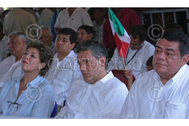 PLAYA GRANDE IXCAN, GUATEMALA, 27OCTUBRE2009.- Cecilia Romero Castillo, Comisionada del Instituto Nacional de Migración junto a Juan Sabines Guerrero, Gobernador de Chiapas asistieron a la ceremonia de agradecimiento a México por la hospitalidad brindada en el conflicto armado. FOTO: ALFREDO GUERRERO/CUARTOSCURO.COM