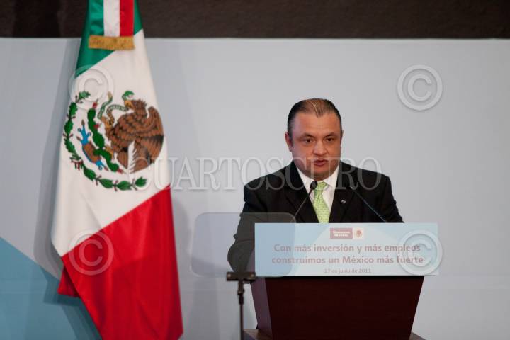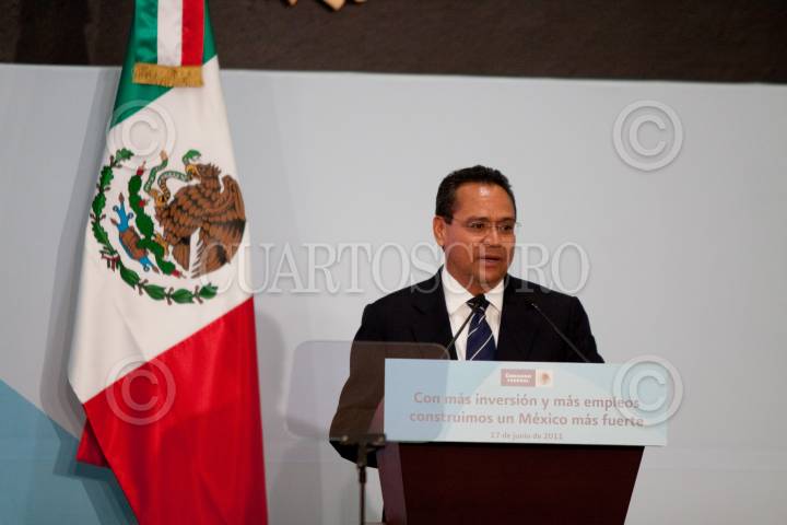 MÉXICO, D.F., 17JUNIO2011.- Juan Manuel Oliva, gobernador de Guanajuato, durante el anuncio de inversión por 500 millones de dólares que la empresa automotriz Mazda en conjunto con Sumitomo Corporation destinarán en la construcción de una planta de vehículos y motores en Salamanca, Guanajuato. FOTO: MOISÉS PABLO/CUARTOSCURO.COM