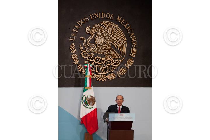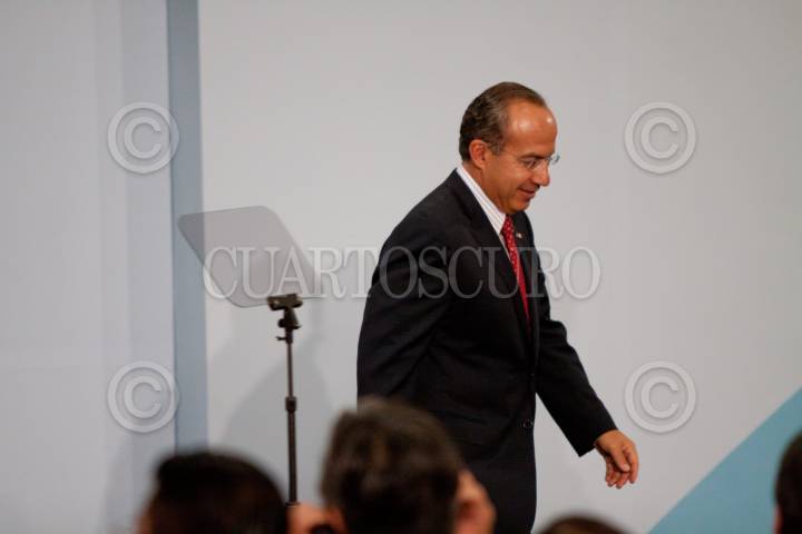 MÉXICO, D.F., 17JUNIO2011.- Felipe Calderón Hinojosa, Presidente de los Estados Unidos Mexicanos, durante el anuncio de inversión por 500 millones de dólares que la empresa automotriz Mazda en conjunto con Sumitomo Corporation destinarán en la construcción de una planta de vehículos y motores en Salamanca, Guanajuato. FOTO: MOISÉS PABLO/CUARTOSCURO.COM