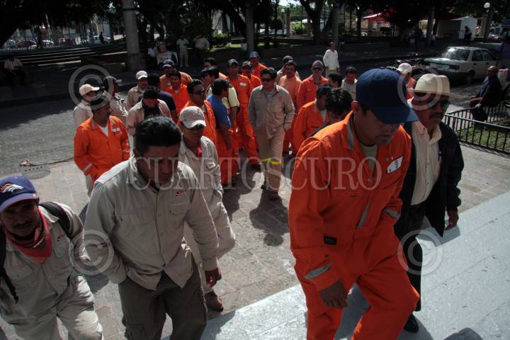 VILLAHERMOSA, TABASCO, 03MARZO2009.- Empleados de dos armadora de pozos petroleros en el municipio de Centla; SMC y SERIESA, se manifestaron y plantaron en las afueras del Congreso local con la finalidad de dar a conocer a los legisladores la mala calidad laboral, prestaciones paupérrimas y salarios de esclavitud. FOTO: MARCO POLO GUZMÁN HERNÁNDEZ/CUARTOSCURO.COM