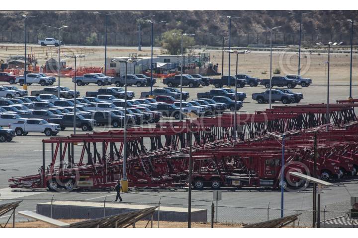 TECATE, BAJA CALIFORNIA, 27AGOSTO2018.- Esta mañana se dio a conocer el entendimiento comercial logrado en las renegociaciones del TLCAN. El nuevo tratado se llama "Acuerdo comercial EE.UU - México. Se estima que durante los próximos días se integre Canadá a las negociaciones para sellar un acuerdo trilateral. La imagen muestra el traslado de automóviles tipo pick up, de la armadora Totota, ubicada en Tecate, hacia la garita de Otay. FOTO: OMAR MARTÍNEZ /CUARTOSCURO.COMnegociaciones para sellar un acuerdo trilateral. FOTO: OMAR MARTÍNEZ /CUARTOSCURO.COM