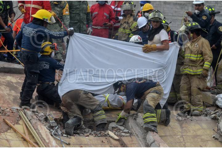 CIUDAD DE MÉXICO, 20SEPTIEMBRE2017.- Rescate de un cuerpo sin vida en el colapso de la calle Prolongación Peten y Emiliano zapata colonia Emperadores Benito Juárez tras el derumbe de un edificio. FOTO: ARMANDO MONROY /CUARTOSCURO.COM