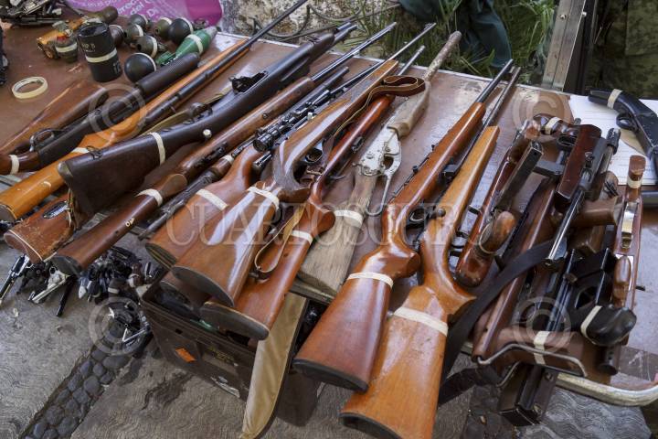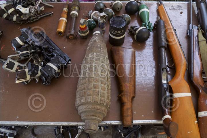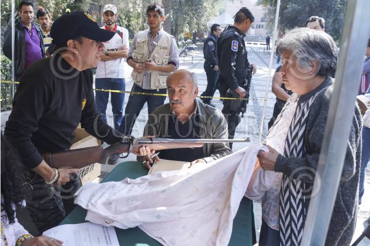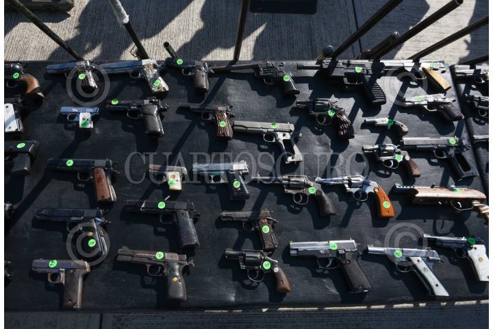 MÉXICO, D.F., 29DICIEMBRE2012.- En un día más del programa "Desarme Voluntario" en la Delegación Iztapalapa, al cierre del día fueron recibidas en total 146 armas, de ellas: 19 armas largas, 112 armas cortas y 15 granadas, cartuchos y municiones. FOTO: ADOLFO VLADIMIR /CUARTOSCURO.COM