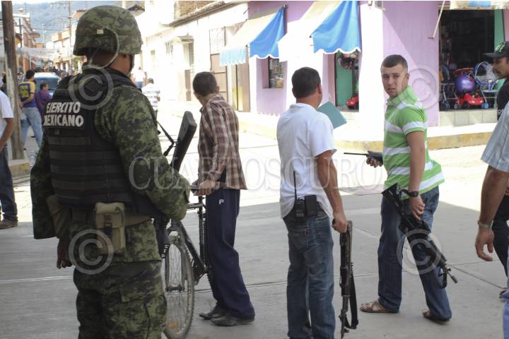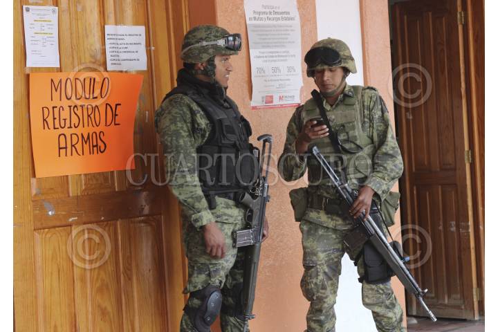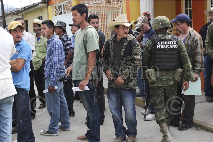 COALCOMAN, MICHOACÁN, 31ENERO2014. En el tercer día de registro, miembros del Ejército Mexicano continuaron con la afiliación de los grupos de autodefensa y se auxiliaron con un documento oficial para la acreditación de las armas que serán legales ante la Secretaría de Defensa Nacional (Sedena). FOTO: JUAN JOSÉ ESTRADA SERAFÍN /CUARTOSCURO.COM