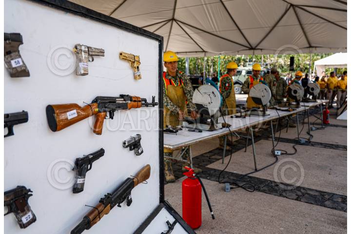 En la 35 Zona Militar de Chilpancingo fueron destruidas armas decomisadas al crimen organizado. El evento estuvo encabezado por la gobernadora Evelyn Salgado y el comandante Enrique Martínez López.