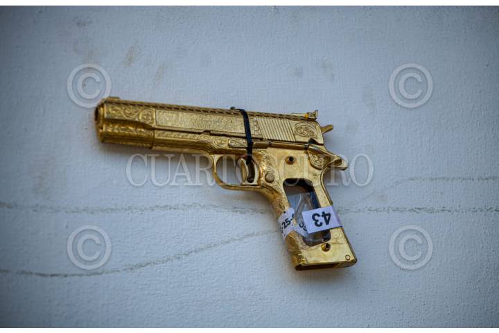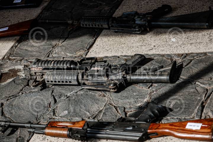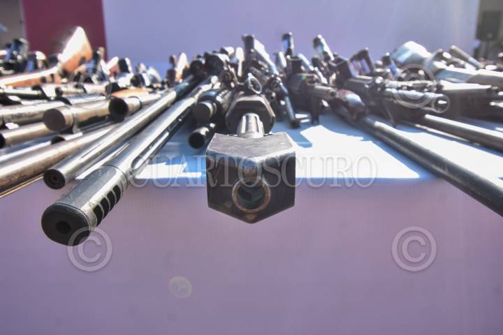 CULIACÁN, SINALOA, 09JULIO2025.- Este jueves, en la explanada del Palacio de Gobierno de Sinaloa, se llevó a cabo un acto simbólico para la destrucción de armas de fuego, organizado por la Defensa, en coordinación con autoridades estatales y municipales. Durante la ceremonia, encabezada por representantes del Ejército Mexicano y autoridades civiles, se mostraron públicamente diversas armas cortas y largas algunas de grueso calibre que fueron previamente aseguradas en operativos realizados en distintas regiones de la entidad. Con maquinaria especializada, los elementos castrenses procedieron a inutilizar decenas de armas, marcando así un compromiso institucional por la pacificación del estado. FOTO: JOSÉ BETANZOS ZÁRATE/CUARTOSCURO.COM