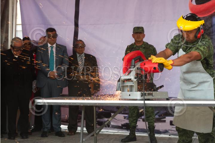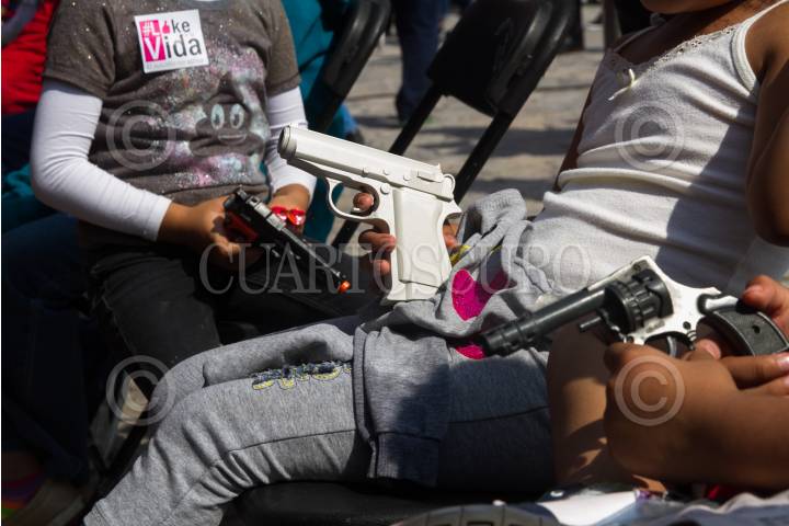 CIUDAD DE MÉXICO, 30JULIO2018.- En la Plaza de las Américas de la Basílica de Guadalupe se realizó una jornada más del programa "Por tu familia, desarme voluntario", a la cual acudieron decenas de niños acompañados de sus padres a intercambiar sus juguetes bélicos por juguetes didácticos. También varios ciudadanos intercambiaron sus armas de fuego y municiones por dinero en efectivo, las piezas recolectadas fueron destruidas por elementos del Ejercito. FOTO: MOISÉS PABLO /CUARTOSCURO.COM