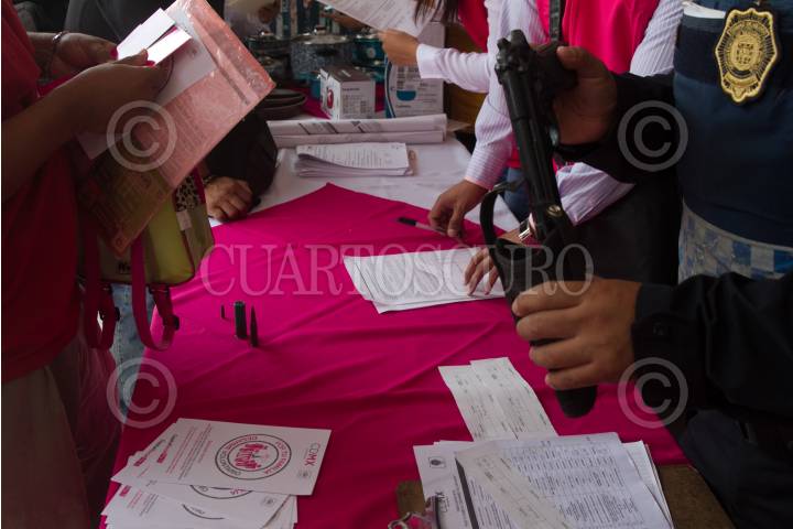 CIUDAD DE MÉXICO, 30JULIO2018.- Dos pistolas calibre 22 y una munición de tanque fue parte de las armas intercambiadas durante una jornada más del programa "Por tu familia, desarme voluntario", realizado en la Plaza de las Américas de la Basílica de Guadalupe. FOTO: MOISÉS PABLO /CUARTOSCURO.COM
