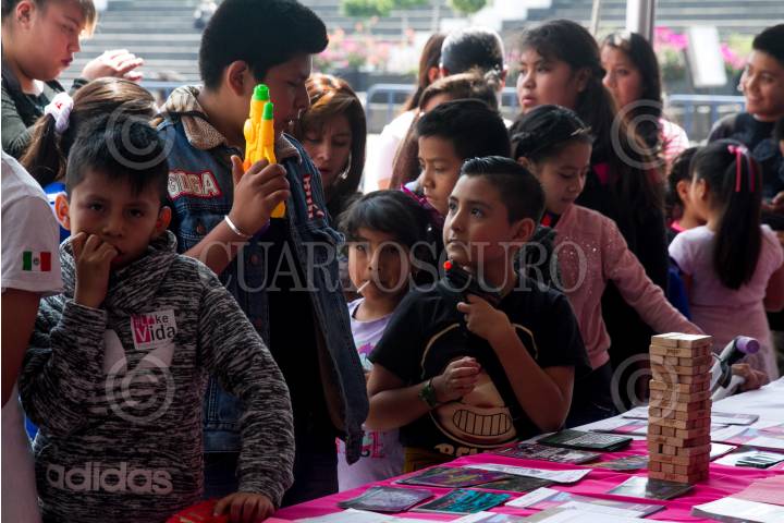 CIUDAD DE MÉXICO, 30JULIO2018.- En la Plaza de las Américas de la Basílica de Guadalupe se realizó una jornada más del programa "Por tu familia, desarme voluntario", a la cual acudieron decenas de niños acompañados de sus padres a intercambiar sus juguetes bélicos por juguetes didácticos. FOTO: MOISÉS PABLO /CUARTOSCURO.COM