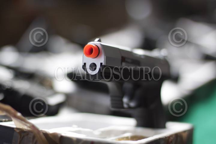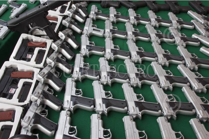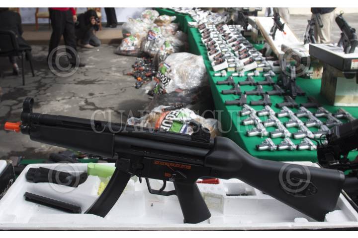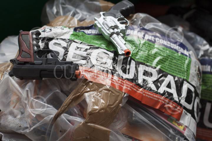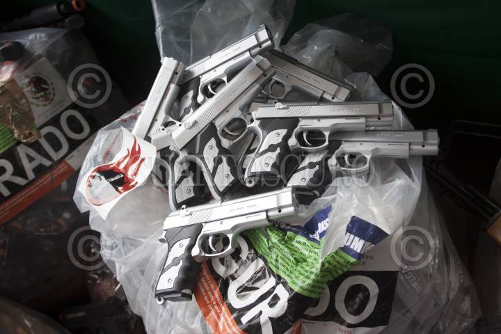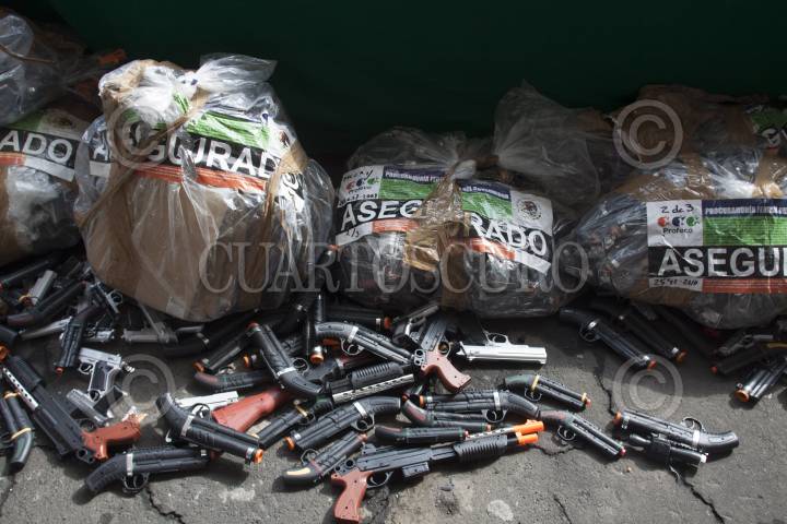 MÉXICO, D.F., 04ENERO2013.- En instalaciones de la Procuraduría Federal del Consumidor se destruyeron cientos de juguetes réplicas de armas de fuego, que muchas veces son utilizados para cometer ilícitos como en asaltos, aunque el objetivo principal de los operativos en donde se decomisan estos juguetes bélicos es desalentar a los niños su uso ya que los induce a a la violencia, según lo señalado por Miguel Ángel Mancera, Jefe de Gobierno. FOTO: MOISÉS PABLO / CUARTOSCURO.COM