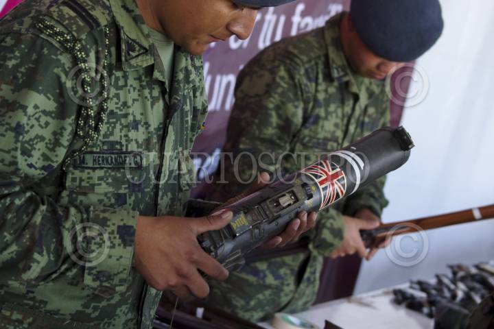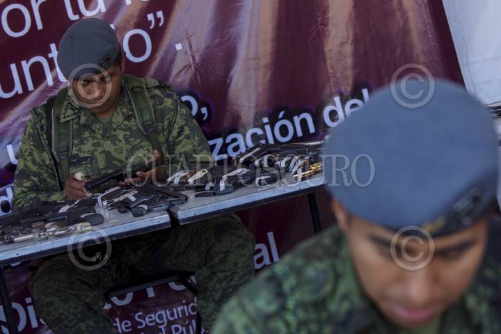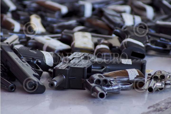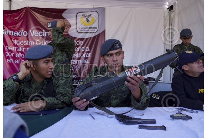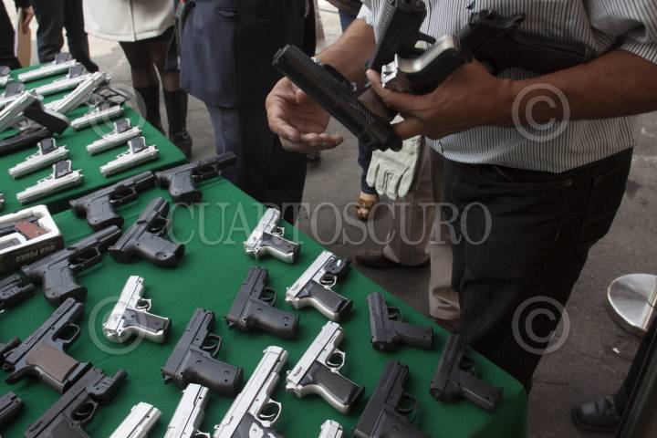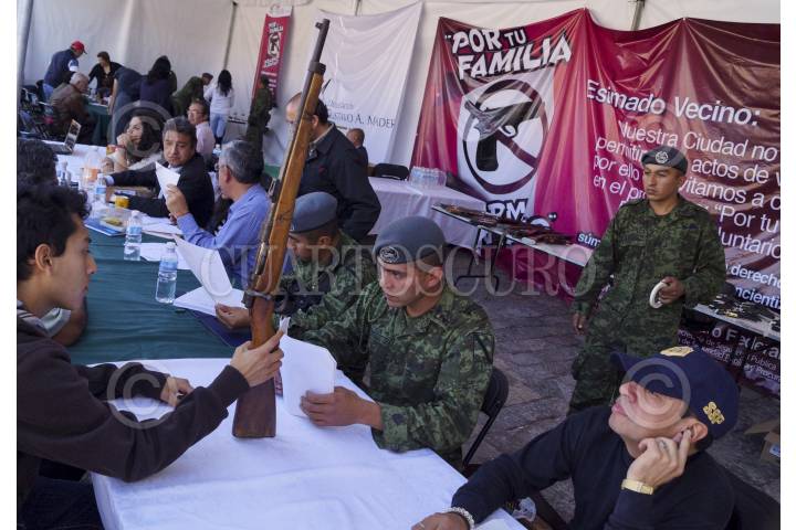 MÉXICO, D.F., 10ENERO2013.- 140 armas fue el resultado del tercer día del programa "Desarme voluntario" en la delegación Gustavo A. Madero. El modulo instalado en la explanada de la Basílica de Guadalupe, recibió de entre pistolas y rifles, 3 ametralladoras, una ballesta, 13 granadas y un lanza granadas. FOTO: ADOLFO VALTIERRA /CUARTOSCURO.COM