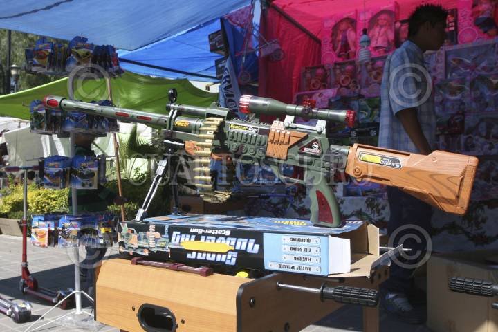 OAXACA, OAXACA 05ENERO2013.- La venta de juguetes bélicos continúa pese a que las autoridades han solicitado a los padres de familia no adquirir dichos productos, los rifles de francotirador, pistolas, agentes policíacos, continúan vendiéndose previo al día de reyes. FOTO: ARTURO PÉREZ ALFONSO /CUARTOSCURO.COM