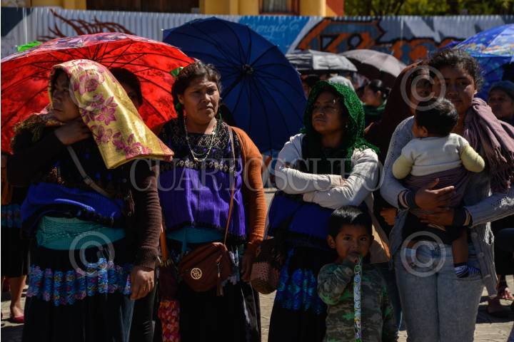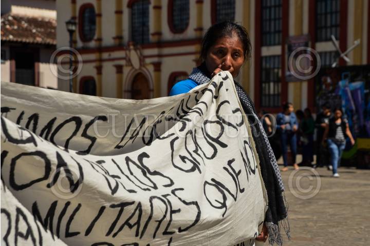 SAN CRISTOBAL DE LAS CASAS, CHIAPAS, 08NOVIEMBRE2019.- Pobladores del Ejido Puebla en el municipio de Chenalhó, marcharon desde el campamento donde viven hasta la Plaza de La Paz ubicada en la cabecera municipal. La comunidad fue desplazada de sus hogares por la violencia ejercida por grupos paramilitares en sus regiones de origen, el gobierno de acuerdo a testimonios de los pobladores, ha incumplido en los acuerdos para resolver la problemática y ellos continuan sin la posibilidad de regresar a sus casas, sin comida, sin trabajo, y en varios de los casos sin escuelas para los niños. FOTO: ISABEL MATEOS /CUARTOSCURO.COM