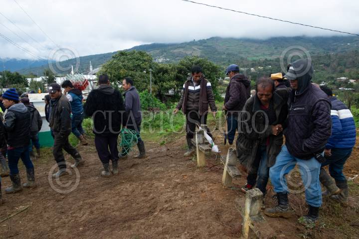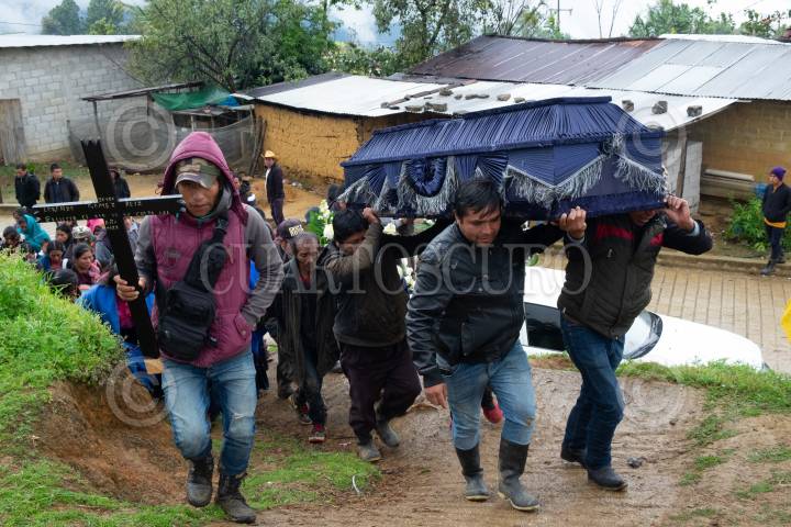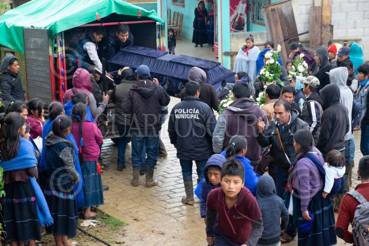 Lorenzo Gómez Ruiz fue enterrado en su natal Aldama, Chiapas, por familiares y amigos, quienes denunciaron que la víctima murió por los balazos que realizan paramilitares desde la zona de Santa Martha.