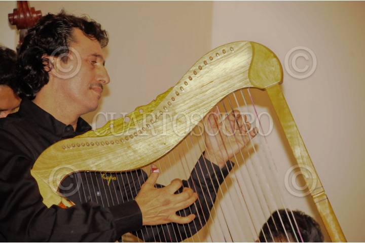 CHAPALA, JALISCO, 23OCTUBRE2008.- Javier Raygosa Munguia, director del semanario Pagina y también músico, presentó anoche en el Centro Cultural González Gallo, (la vieja estación del tren) el disco “Arpa de Chapala”. Numeroso el publico que lo vino a plaudir. En la imagen mientras suena el antiguo instrumento musical. FOTO: MARIA DI PAOLA BLUM/CUARTOSCURO.COM