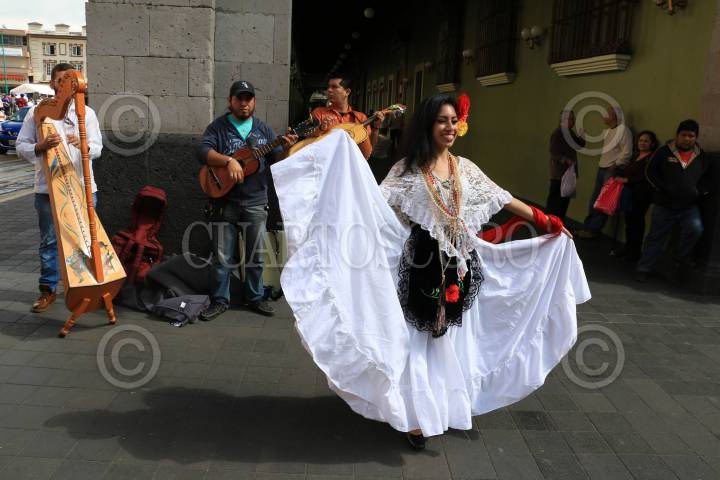 XALAPA, VERACRUZ, 13ENERO2017.- Músicos regionales se ganan la vida tocando y realizando danzas folclóricas del estado en la plaza central del zócalo de la capital de Xalapa. FOTO: SAÚL LÓPEZ /CUARTOSCURO.COM